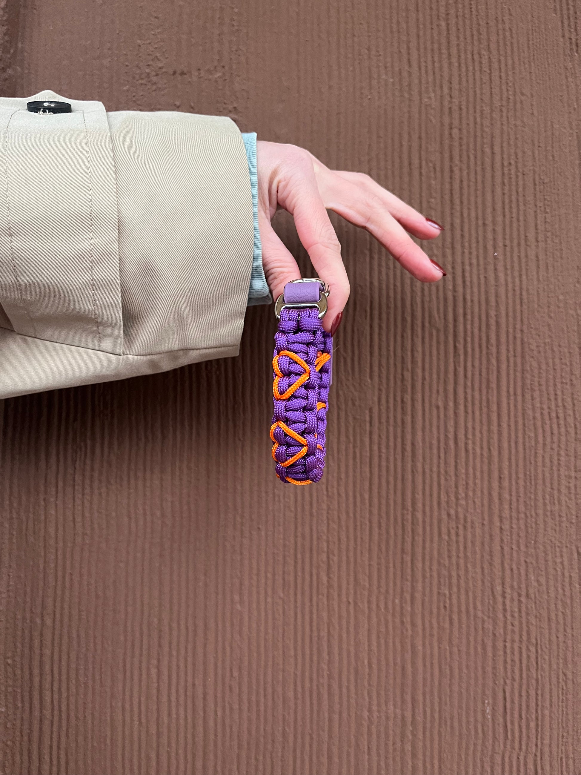 ♥ Lila Paracord Halsband mit gestickten orangen Herzen in verschiedenen Breiten (2-4 cm)