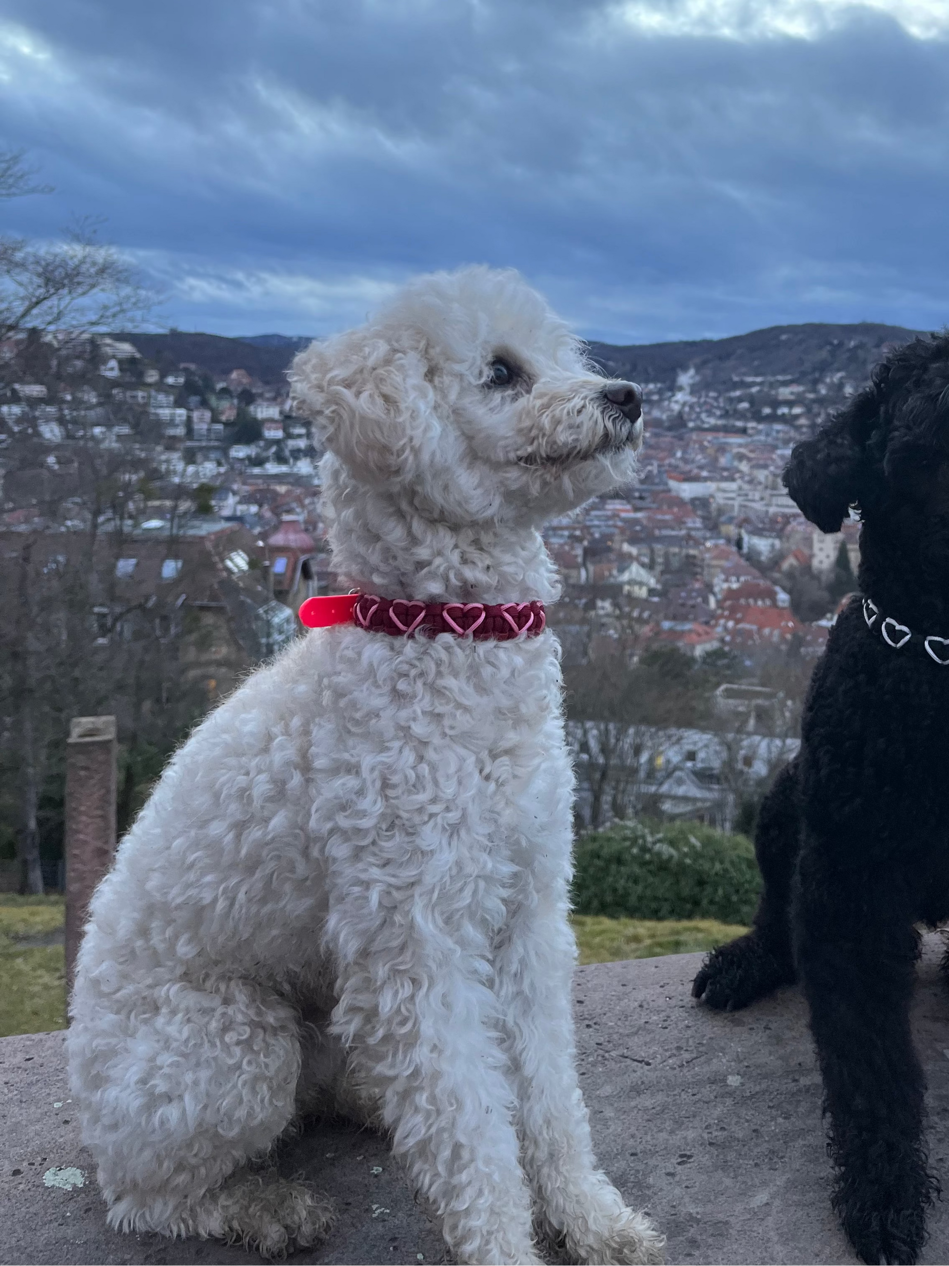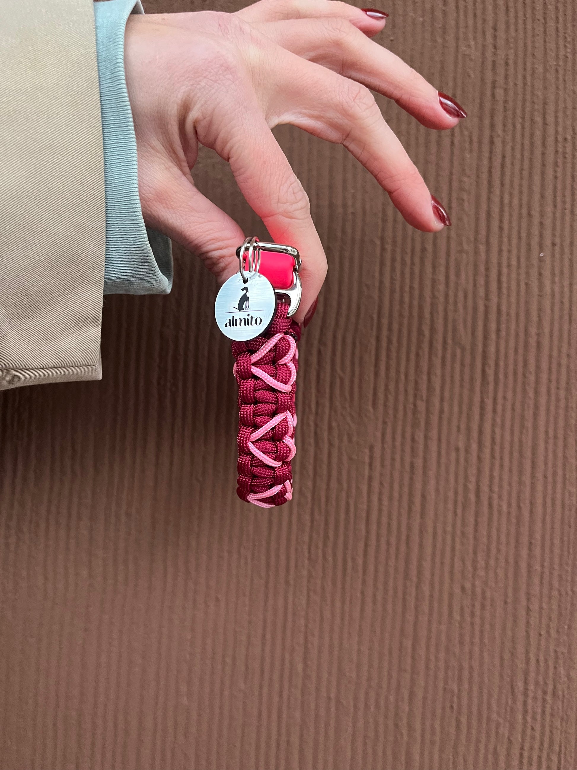 ♥ Weinrotes Paracord Halsband mit gestickten rosa Herzen in verschiedenen Breiten (2-4 cm)